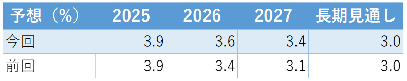 同時に公表された物価見通しは上方修正となり、今回の予想は景気認識の下方修正と物価認識の上方修正が並ぶ形となっております。