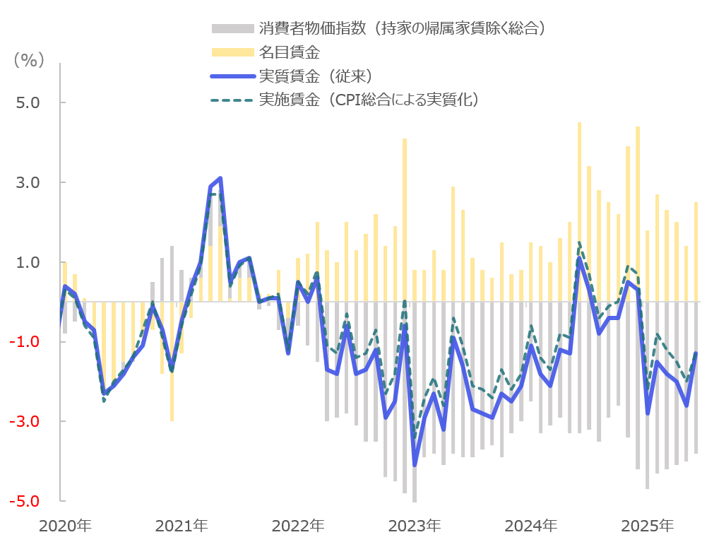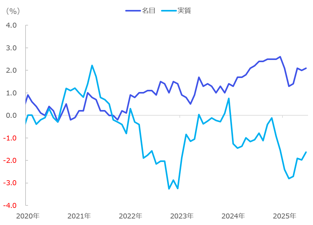 【1】結果:低下幅を縮めるも実質賃金は6ヶ月連続となるマイナス