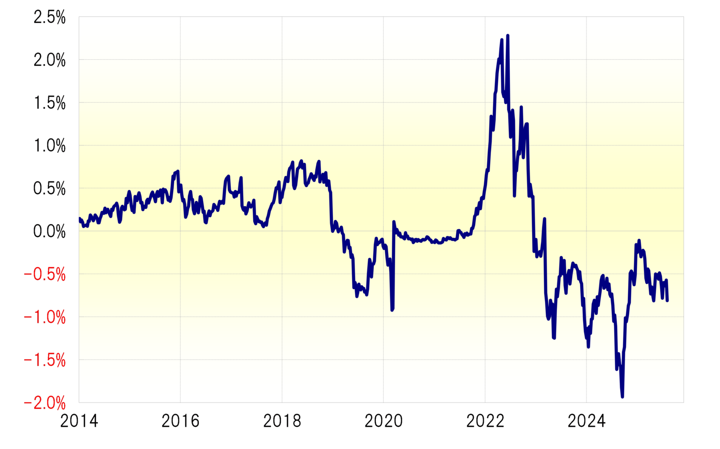 早期の利下げ再開を織り込むところまで米2年債利回りが低下したのであれば、これ以上の米金利低下はないかと言えば、そうではないだろう。2024年9月に0.5%の大幅な利下げを開始する前、米2年債利回りはFFレート上限金利を2%近く大きく下回った。