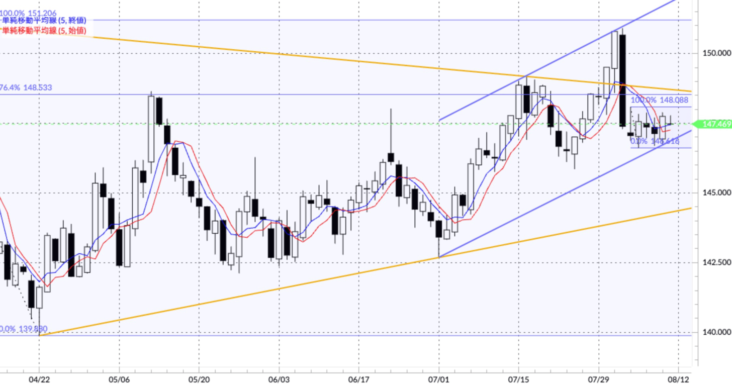 8月8日には自民党総裁選の前倒し実施の可能性が高まったとのことから円安に動く材料とされましたが、147円台後半での戻り売りも根強く、次の材料待ちという流れのまま一週間を終えています。次の材料としては米国CPIということになりますが、当面は米金利を見ながらの展開が続きやすいと言えるでしょう。