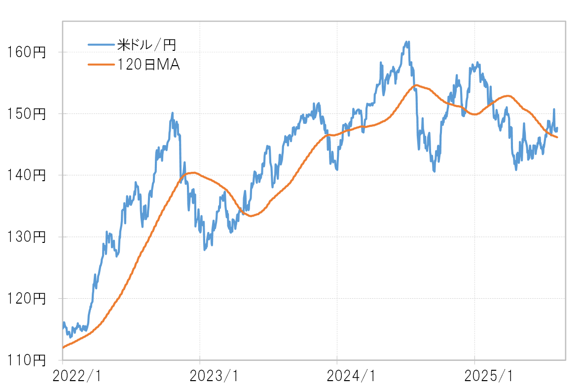 これに対して、今回は120日MAより米ドル高・円安となり、円買いポジションの損失拡大の可能性が出てきた中でも、少なくともこれまでのところでは米ドル高・円安が加速するまでには至っていない。