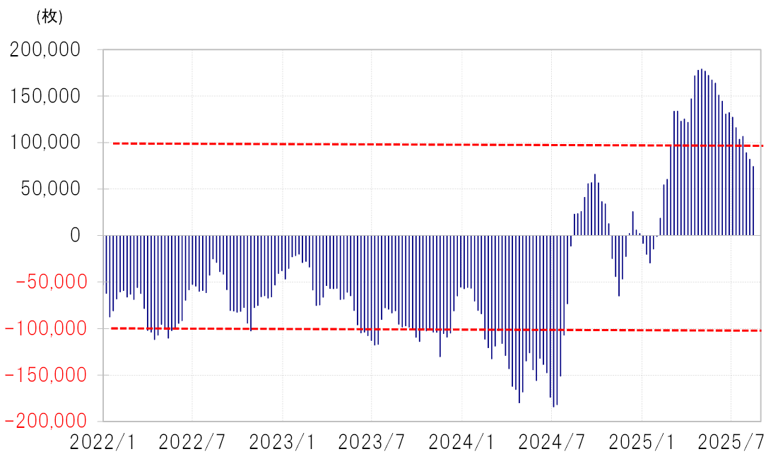 ただし、逆に言えば120日MAの146円より米ドル安・円高となり、円買いポジションが含み益に転換すると、ポジションの処分による円売りは減る可能性があり、逆に再び円買いポジション拡大に動く可能性もあるでしょう。
