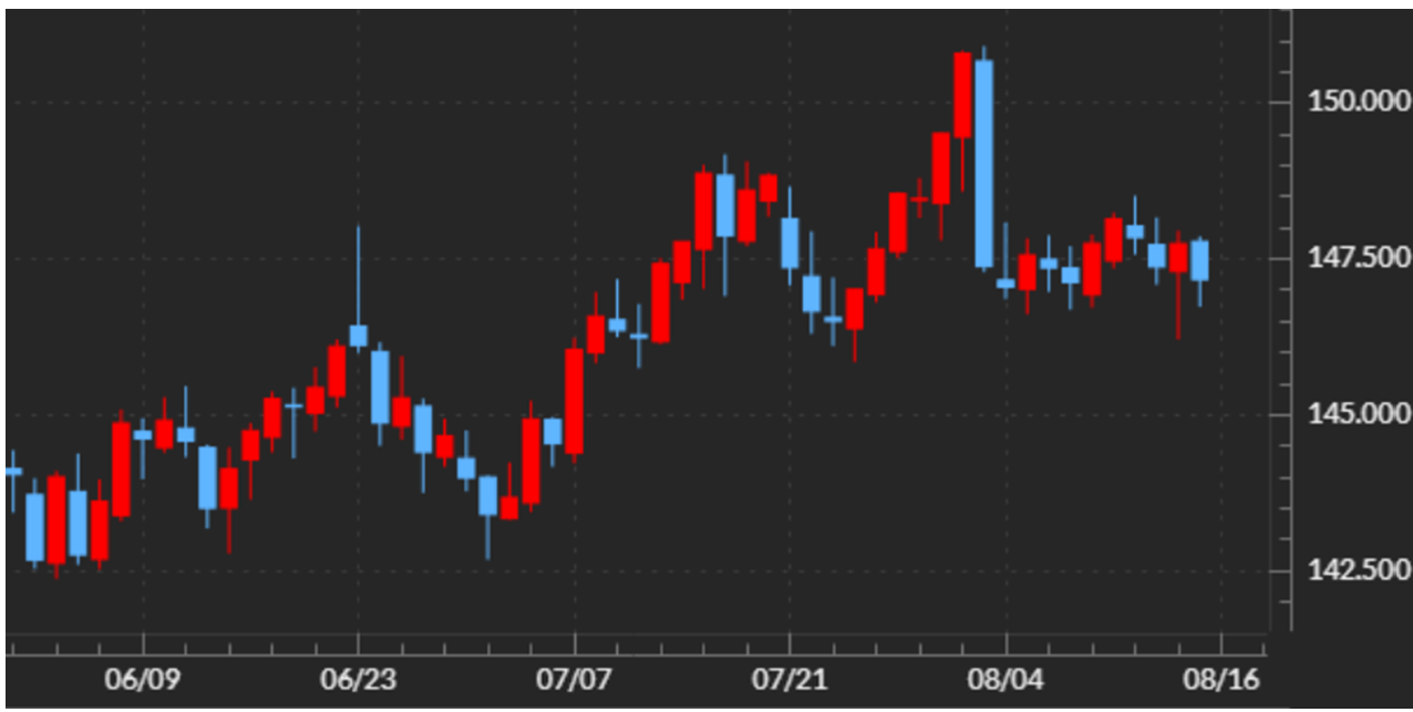 先週(8月11日週)の振り返り=前週(8月4日週)同様147円台中心で方向感定まらず