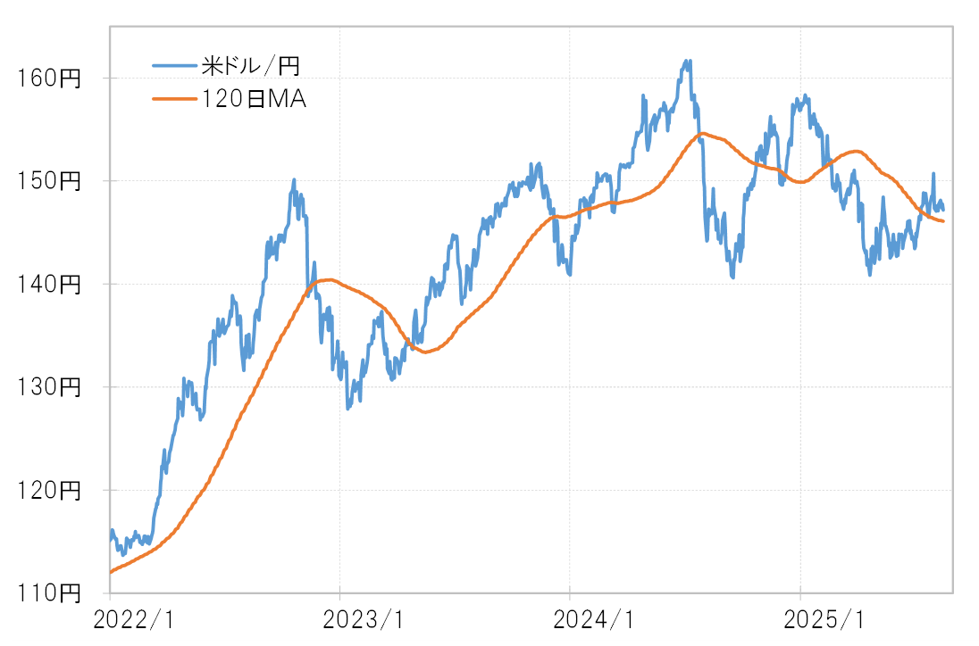 先週(8月11日週)は、そうしたベッセント発言などの影響で米ドル/円は前週の安値を割り込み、一時146円台前半まで下落する場面もありました。ただこの水準では「下げ渋る」ところとなりましたが、それはテクニカルな要因が大きかったのではないでしょうか。