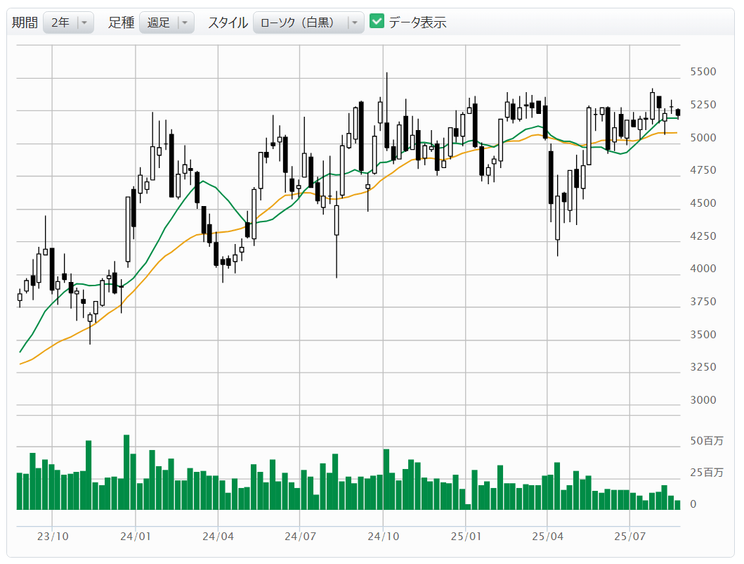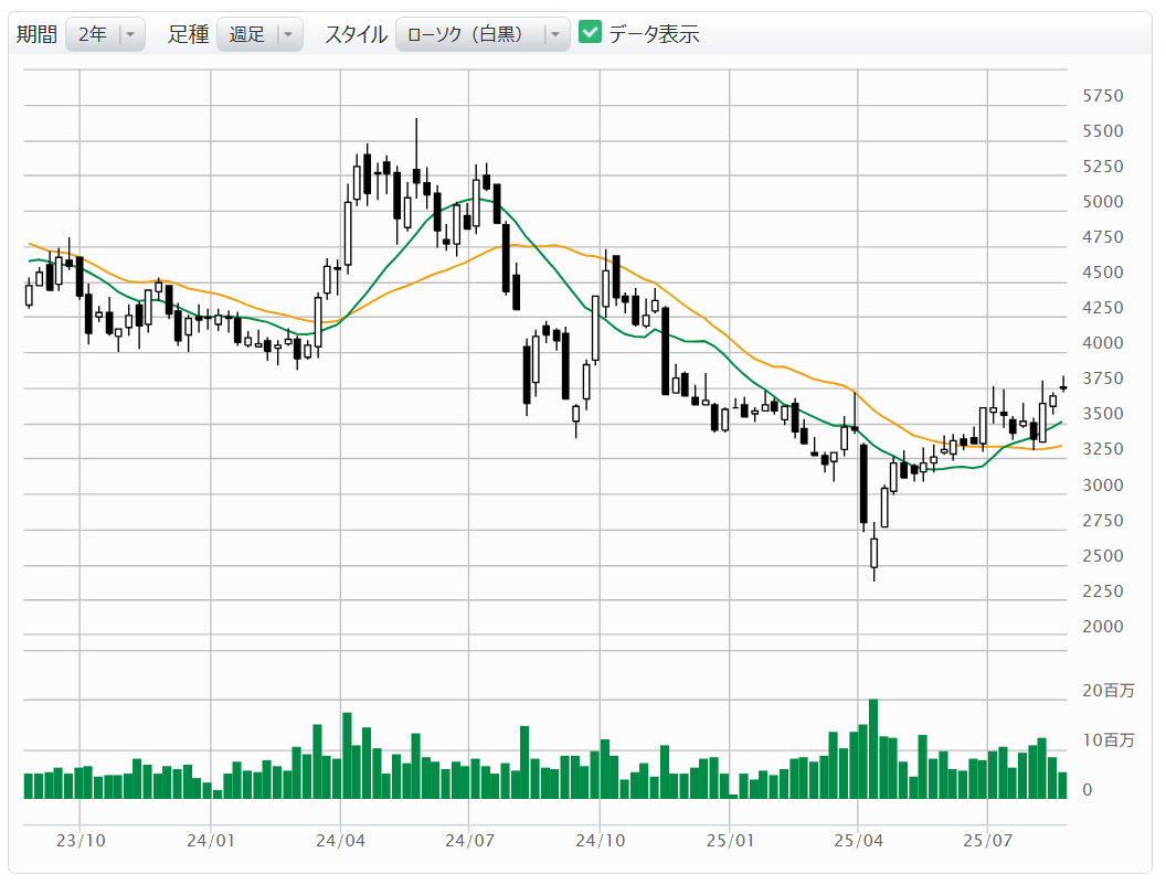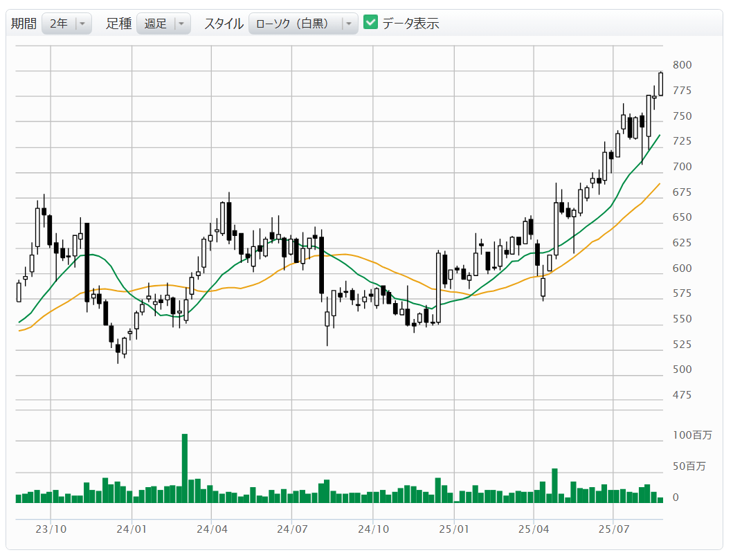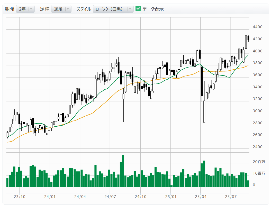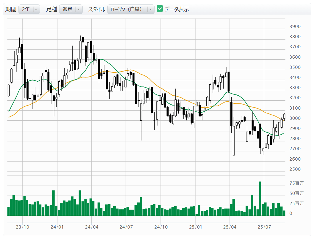 粗鋼生産量で国内首位。自動車高級鋼板など技術力に定評がある。米USスチール(USS)を買収。世界でも有数のメーカーに。2025年第2四半期連結決算から連結開始で、今期は事業利益の実力ベースで800憶円程度の寄与を見込む。フル連結となる2027年3月期は1500憶円の貢献を予想。米鉄鋼関税50%はUSSには追い風。今期の最終損益は事業再編損失の計上で400億円の赤字予想。年間配当は120円。来期は増配への期待も。9月末割当で1対5の株式分割を実施。配当利回り約4%。PBRは0.5倍台。