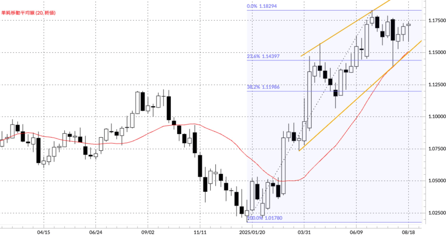先週(8月18日週)のユーロ/米ドルは、基本的に米ドル/円での米ドルの動きと同様で、週初からジャクソンホールのパウエル議長講演までは米ドル高・ユーロ安の流れが続きました。週初には米ウ首脳会談も開かれましたが、現状では停戦合意には程遠いこともあり、特に材料視はされませんでした。
