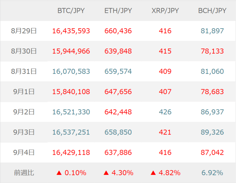 今週(8月29日~9月4日)の相場動向