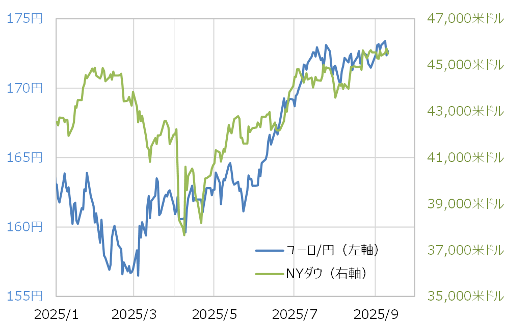 そのユーロ高・円安をある程度説明できそうなのは、5月から広がる株高の動きだ(図表6参照)。為替相場において「円<米ドル<ユーロ」の強弱関係で金利差との関係が崩れた動きが広がるという「謎」と、日米などの主要な株価指数が軒並み最高値を更新するなど株高が広がっていることと何らかの関係があるかは引き続き注目していきたい。