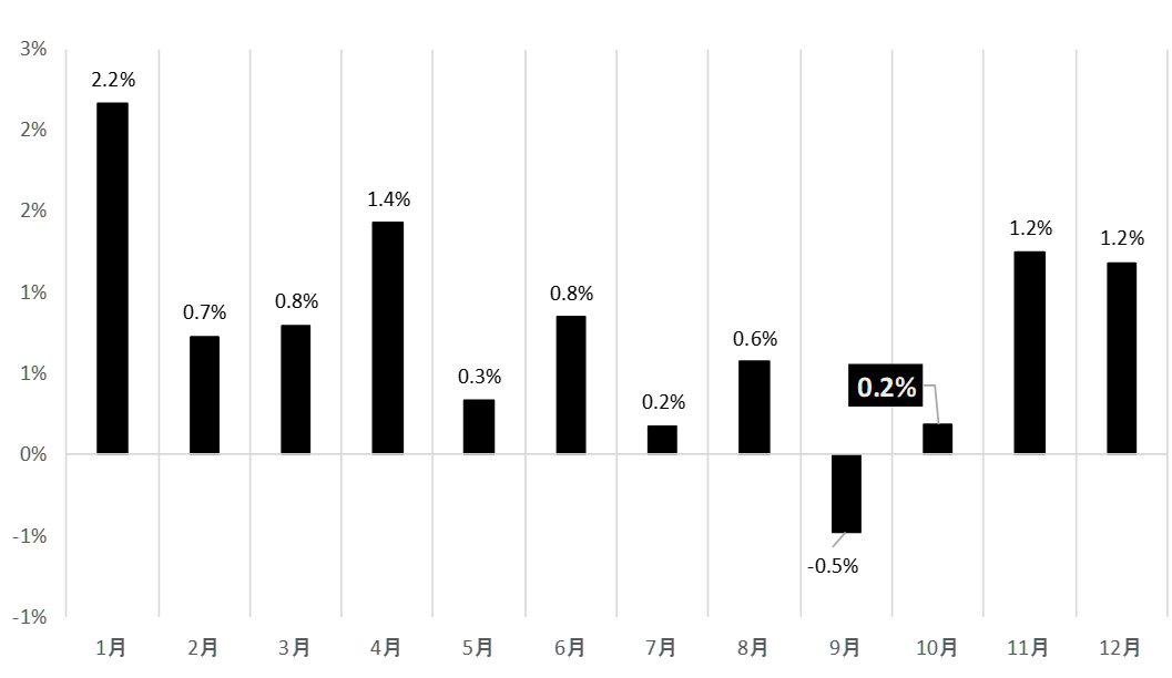 しかし、10月効果は「相場が荒れやすい」という意味で、「相場が下がる」というアノマリーではありません。図表2で日本市場の結果を、いま一度確認しましょう。