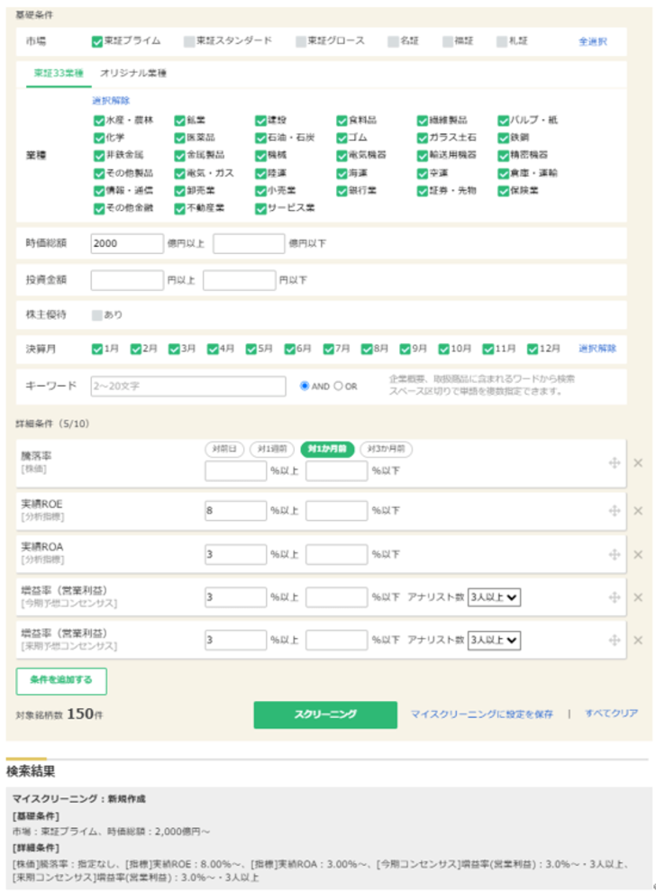 銘柄スクリーニングの条件設定について