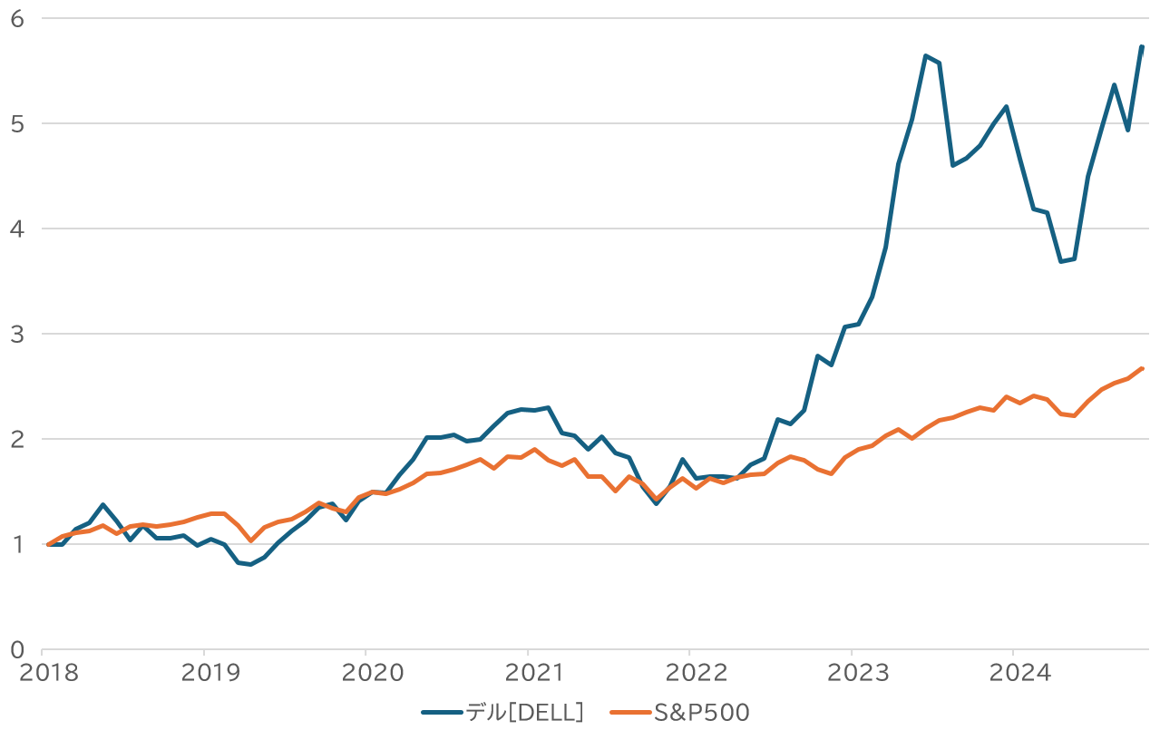 また、エヌビディア[NVDA]、アドバンスト・マイクロ・デバイシズ[AMD]、インテル[INTC]と連携し、AIパフォーマンスを最大化するラックスケールシステムを共同設計しています。例えば、「PowerEdge XE9712」はエヌビディアと共同設計され、「NVIDIA Blackwell世代GPU(GB200)」を搭載したAIサーバーです。コアウィーブ[CRWV]が初めて導入したことで、同社が初めてGB200ラックを市場に投入した企業となりました。11万基のGPUと液体冷却インフラをデータセンターに導入、6週間で稼働させたと報告されています。これ以降にも、xAIやサービスナウ[NOW]といったAI大手に導入しています。