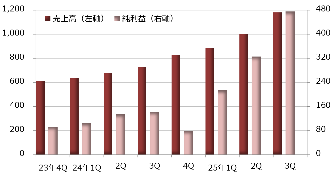 売上高は4-6月期に続き10億ドルを超えました。純利益は四半期決算で初めて4億ドルを突破しており、売上高と純利益がともに過去最高を更新しています。