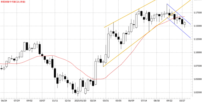 一方で片山財務相や三村財務官によって円安の動きがファンダメンタルに沿っていないという認識が示されたことで積極的な円売りも動きにくい流れとなり、先週(11月3日週)は153円割れの米ドル買いと154円超えの米ドル売りに挟まれ方向感が出にくい流れが続きました。今週(11月10日週)も目立った経済指標の発表がなく米地区連銀総裁の講演が材料となる程度です。